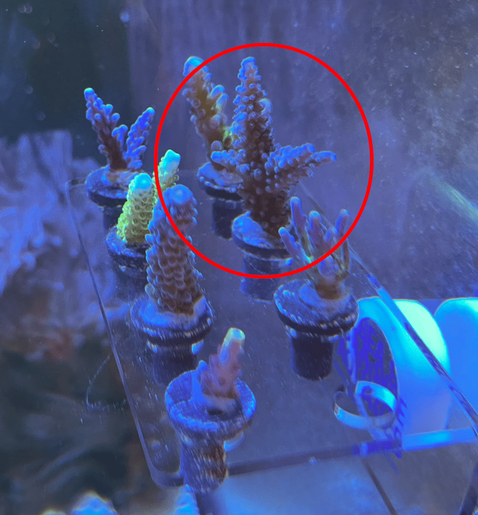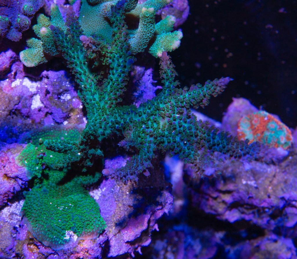 Notes: Decent growth rate, with both rock encrusting and branching. Originally had in my Max E-170 tank, moved to 100g mixed reef.