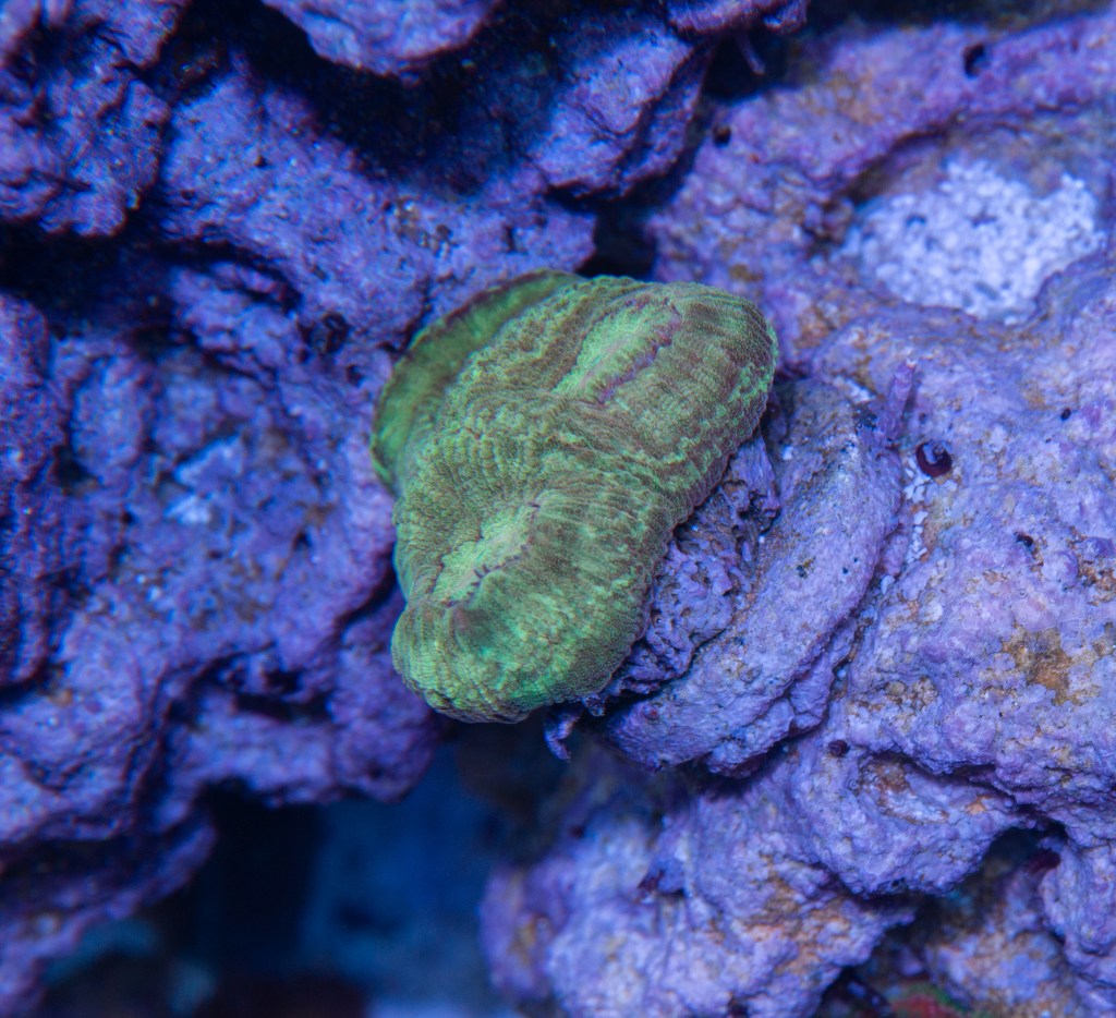 Description: Calling it yellow may be a stretch. More of a green with some yellow tone, although under the right lighting it may be more of a yellow. Color is fairly uniform across with typical favia shape.